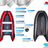 Комплектация AIR MAX производится в размерах от 330 до 420 см. из стандартного и укрепленного ПВХ. Лодка оснащена укрепленным дном с противоскользящим покрытием, дополнительной броней по килю и баллонам.
