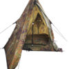 Классическая палатка-бивуак с тамбуром для снаряжения. Устанавливается как при помощи двух трекинговых палок, так и любых срубленных в лесу стоек. В случае сильного дождя или снега можно забраться в палатку и поставить рюкзаки в распор.